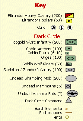 Laid out before you in the mouth of the pass are the assembled forces of the Dark Circle defenders.
