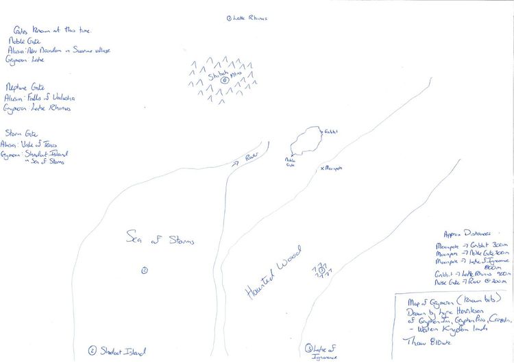 - Head of River Mirimar - Rainbow Gate, small cave complex occupied by Saurime. Trade and portal access agreement. Opens to former Grool complex in Imboo territory 300 miles SW of Gribbit.