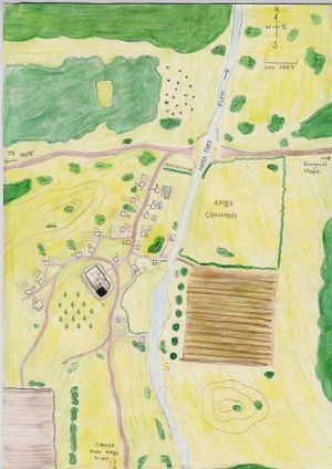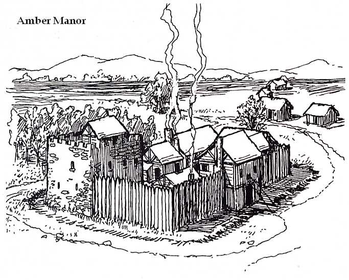 Amber village is the western most settlement of Carzala. The village is just north of the Fastness of Girwyllan outside of the high mana area by only a couple of miles. It supports the mines to its south. They know a large amount about the hills to the south and the creatures that live there. A house is supported by the village for Seagate Guild members when they visit see number 4. The Village is more prosperour than most manorial villages, and holds 125 acres of land of which 25 acres are good for farming. The land is blessed.