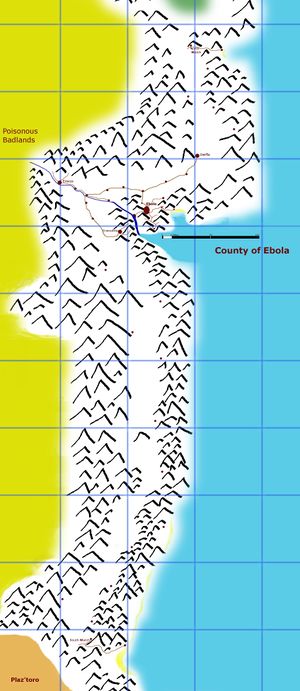 Del Toro is comprised of two counties, Ebola the northern mountainous coastline and Plaz'toro the grasslands of the south.