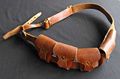 This leather bandolier weighs ½ lb and has five small pockets. Each pocket will hold a single object no more than 10 cms along its greatest dimension which weighs less than 10 lbs. While the object is in the pocket, it will not count against the wearer's Encumbrance.
