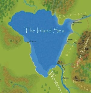 It is the westen edge of the Lunar Empire. A large fresh water sea. Wilds and the Sea of Grass on the west and northern shores. The Inland Sea is outside the protection of the glow lines. To the east of the Inland Sea is Carmania Province