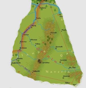 The western province of Orinin is almost split in two by the range of hills that run down its centre. The range of hills high point is the large mountain of Jernotius. In the west of the province most of the trade flows down the rivers heading west and then north to Dendens Town