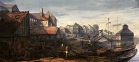 - Eylea, a small settlement on the river. The majority of the town is behind heavily fortified stone foundations. A shanty town is outside the main walls and surrounded by simple fortifications. Busier than Compton. Reclaimed a few miles in each direction. Farm land and fishing. Not a lot of fishing on the river, lots of sediment. More than is expected.