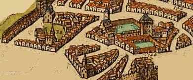 This is an artistic rendition of Downtown by Braun and Hogenberg.