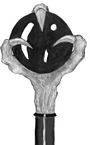 This staff is a light mace for a three hex humanoid. It weighs 10 lbs, and for anyone of size 5 or 6, it must be wielded (and Ranked), as if it were a quarterstaff. As a quarterstaff, it requires a minimum PS of 25 and MD of 16 to wield. Base Strike Chance is 75% and base Damage is 2 rollup D10 + 2.