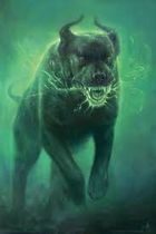 Effects: The Adept summons a great spectral hound of the moors which will bell and lead them to an entity who they have previously encountered or studied (as per the Location Spell of the College of Ensorcelments and Enchantments). The spectral hound may move along the ground or through water or the air but not through solid obstructions, fire, or the area of a Necromantic Special Counterspell. It may be dissipated by having a Necromantic Special Counterspell cast on the area it occupies. The target must share the same plane as the Adept, but otherwise, range is not a consideration. It has a has a movement rate of 650 yards per minute and a TMR of 13, but has no attack and its combined EN and FT is 20 (+5 per 3 full Ranks).