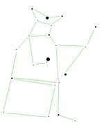 In some cultures, the Warrior has been called 'The Pan' as it can look like a saucepan. The bottom star of the three that depict the Hunter's Sword (or the pan handle), looks fuzzy in spyglasses and has been described as having the colour of pinkish/red. The Warrior also contains 'The Demon Star' as over a period of three months, this star changes noticably in brilliance from magitude 3 down to magitude 5. This star is reddish and there is still some arguments about which fire demon this star is pacted to. Aim appears to be the most popular choice as it has been described as a burning coal that waxes and wanes as it burns.