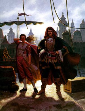 It is a free city holding a charter from the Lunar Empire. It is a major trading port with well over 40 ships in port on any given day. The weather is always good for shipping. Each day four to twenty free traders arrive with cargo from Cognitam City in the east mainly bearing food, and people. The city is home to many traders of all types. Over a dozen languages are spoken on the docks. The ships and free traders come from all over the Islands of Adventure. It is said that everyone in Tycho is a trader.