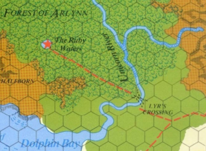 Southernmost ford of the Unicorn River before it empties into Dolphin Bay, Lyr's Crossing is part of the trail from Regar's Keep to the Ruby Waters for those planning on bathing there.
