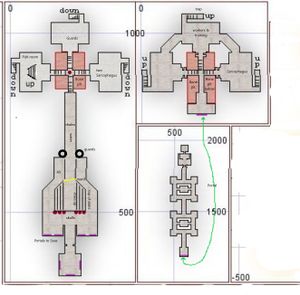 Finally we could see a double archway ahead, and four people standing around it. They looked like they were living but we could also see more incorporeal guards watching the area. 80ft out from the archway, the grill walkway turned into a stone floor and beyond the archway, we could see a stairway going down into darkness. Air was moving in and out of the archway as if something large was breathing, plus there was the smell of human mixed in with something really unsavory.